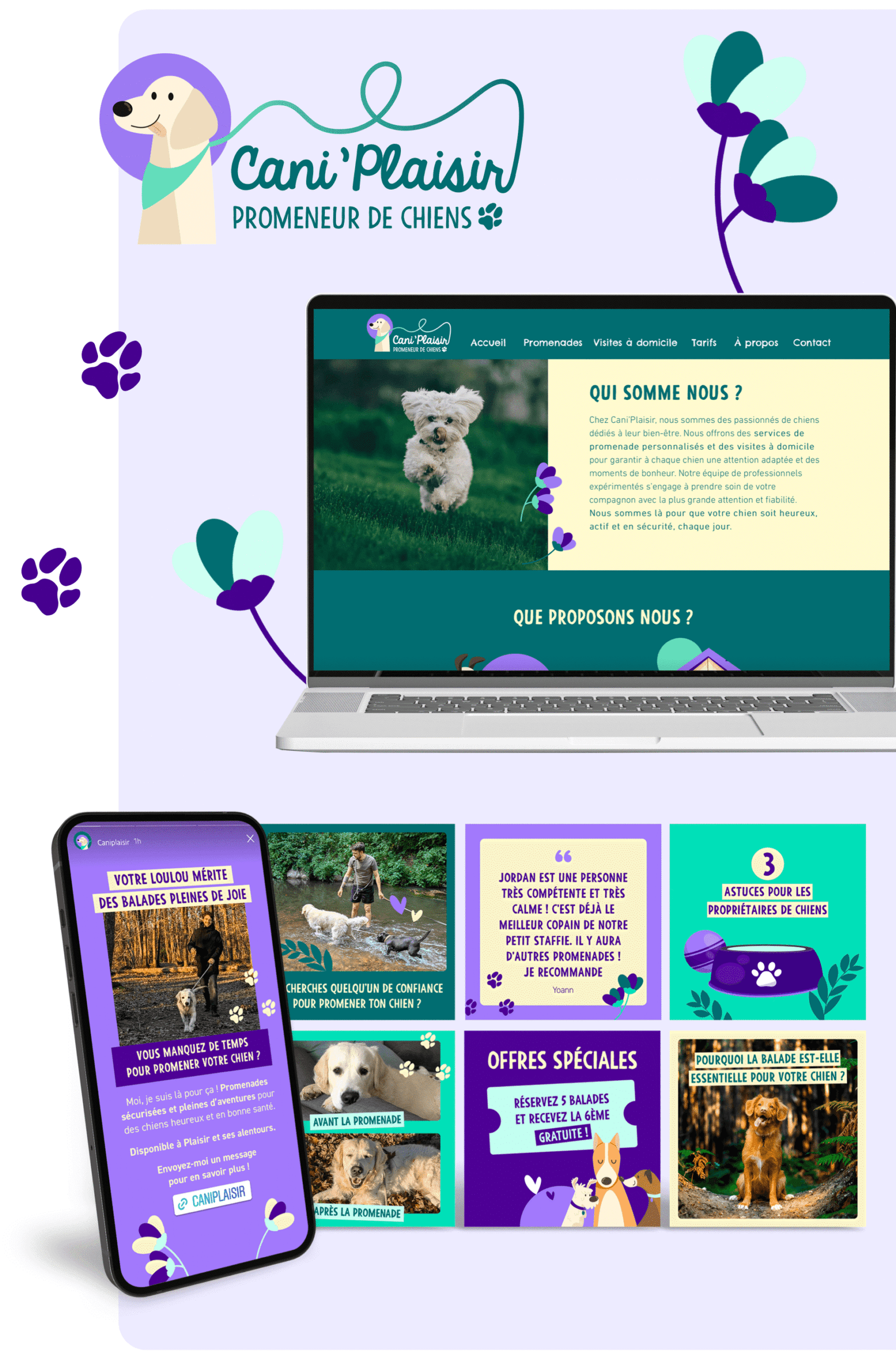 J’ai conçu le logo et la charte graphique de Cani’Plaisir, une entreprise spécialisée dans les services de promenade pour chiens, en créant une identité visuelle cohérente et engageante. J’ai également géré les réseaux sociaux de l’entreprise, en réalisant des contenus visuels attrayants et adaptés, afin de renforcer sa présence en ligne et d’engager sa communauté.