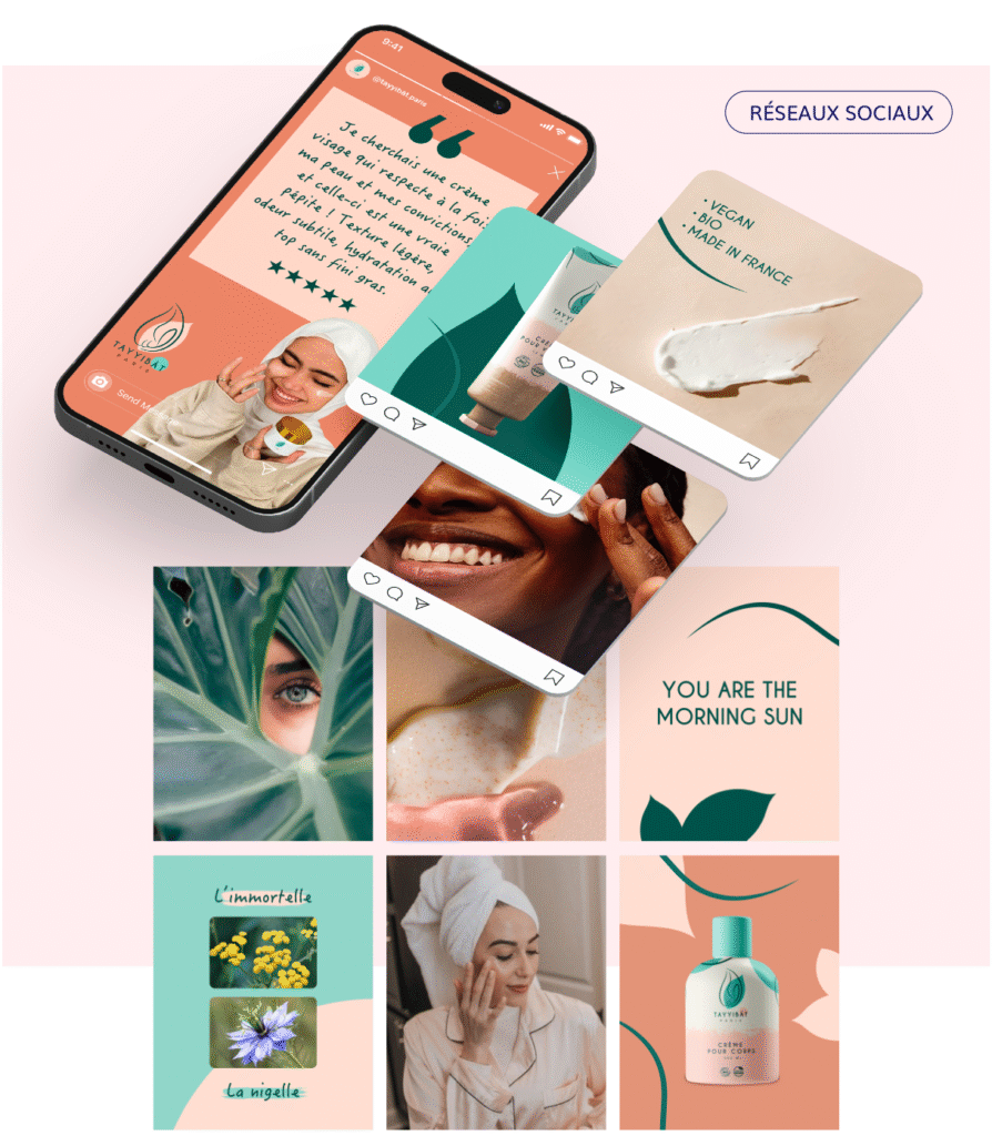 J’ai conçu la charte graphique de la marque Tayyibât, une entreprise engagée dans la production de cosmétiques bio et vegan. Ce projet a impliqué la création d’une identité visuelle reflétant les valeurs éthiques et naturelles de la marque, avec un design moderne et élégant. En parallèle, j’ai également imaginé et réalisé les packagings des produits, en veillant à harmoniser leur esthétique avec la charte graphique. L’objectif était de garantir une cohérence visuelle forte, tout en séduisant une clientèle soucieuse de l’environnement et du bien-être animal.